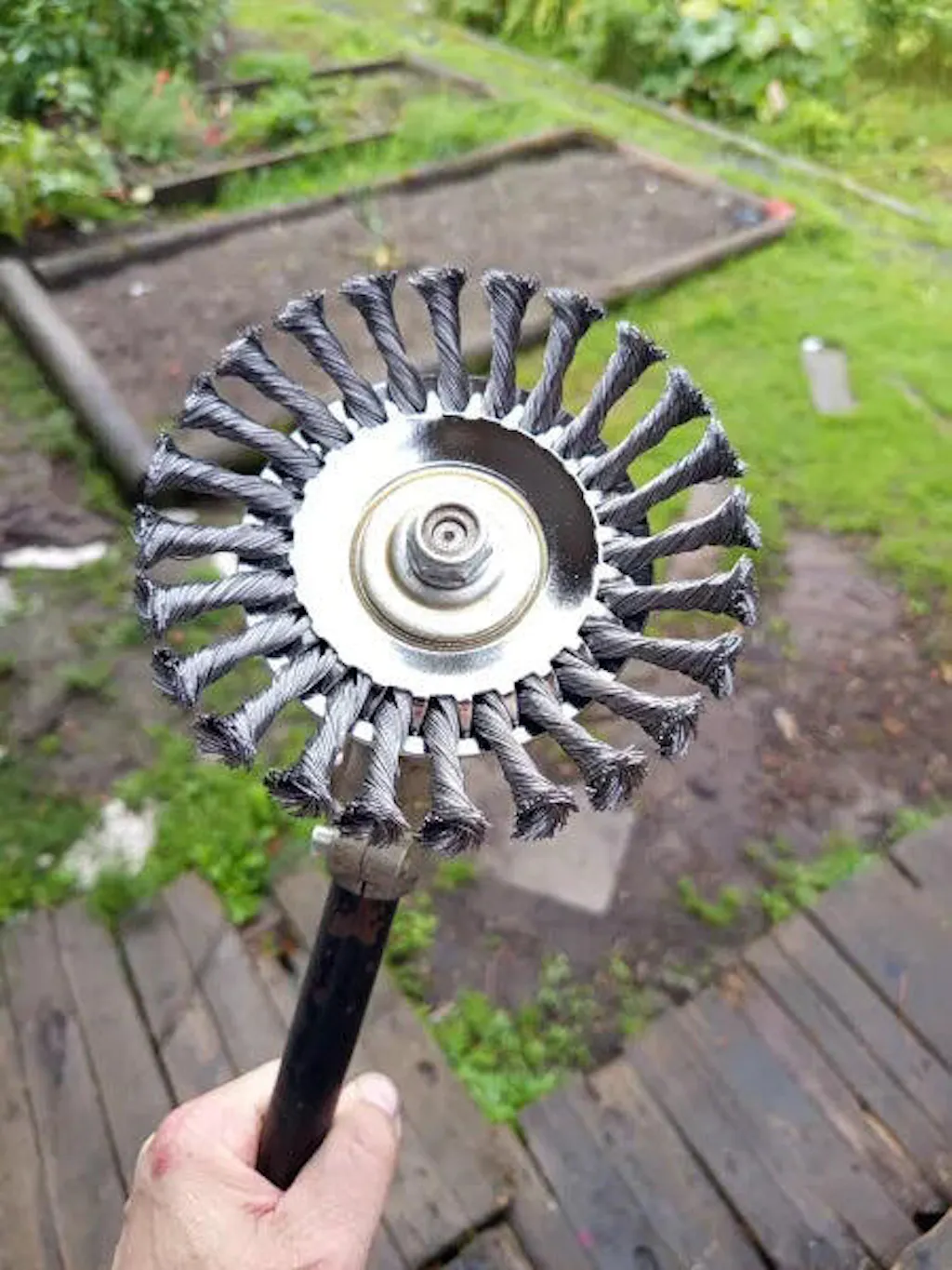 Cambia a la hoja de alambre de acero de alta calidad: corta césped, musgo y suciedad al instante, sin interrupciones.