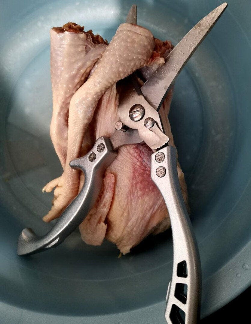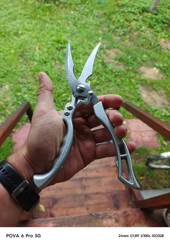 Uso versátil: Ya sea para deshuesar pollo, cortar carne o trocear huesos duros, estas tijeras son la herramienta perfecta para múltiples tareas en la cocina.